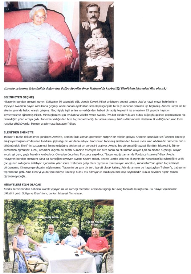 Αλλά το εντυπωσιακό είναι ότι αποφασίστηκε να την κάνουν ταινία μια ομάδα «Τούρκων» οι οποίοι όταν την έμαθαν είχαν συγκλονιστεί καθώς είχαν γίνει και μάρτυρες της συνάντησης μετά από τόσα χρόνια όλων αυτών των χαμένων συγγενών από την φρίκη ενός πολέμου και μιας γενοκτονίας.