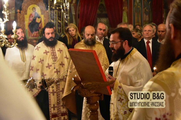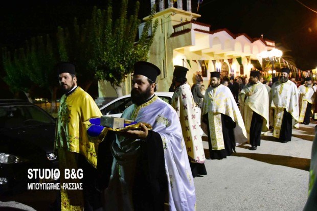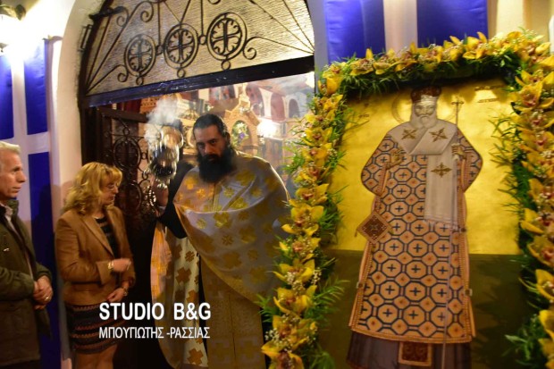 Τον πανηγυρικό εσπερινό τέλεσε ο Ιεροκήρυκας της Μητροπόλεως Αργολίδος αρχιμανδρίτης Χρυσόστομος Παπουλέσης. Μετά τον εσπερινό, ακολούθησε η λιτάνευση της ιερής εικόνας καθώς και του ιερού λειψάνου του Αγίου Νεκταρίου προς ευλογία των πιστών.