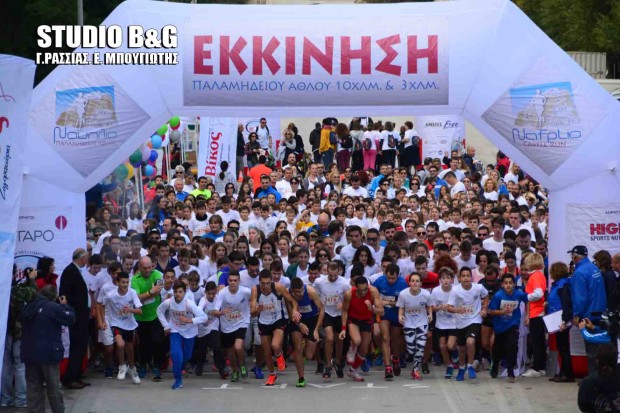 Η πόλη του Ναυπλίου εόρτασε τα ελευθέρια της από τους Τούρκους διοργανώνοντας για πρώτη φορά τον «Παλαμήδειο Άθλο» μία απόσταση 5 χιλιομέτρων, με ανάβαση στο κάστρο του Παλαμηδείου από τα 999 σκαλιά, Κυριακή 29 Νοεμβρίου 2015. Ο αγώνας αυτός ήταν ειδικών απαιτήσεων, καθώς οι δρομείς ανέβηκαν τα 999 σκαλοπάτια και διέσχισαν εσωτερικά το κάστρο τερματίζοντας στο κέντρο της πόλης .Παράλληλα πραγματοποιηθήκαν και αγωνίσματα 3 και 10 χιλιομέτρων. Συνολικά σε όλα τα αγωνίσματα συμμετείχαν πάνω από 1500 αθλητές . Οι αγωνιστικές εκδηλώσεις ήταν ενταγμένες στις εορταστικές εκδηλώσεις για την απελευθέρωση της πόλις του Ναυπλίου.