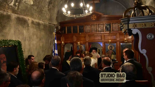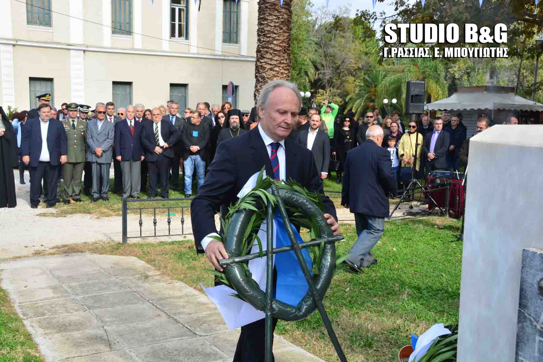 Στην συνέχεια τελέσθηκε επιμνημόσυνη δέηση στο ανδριάντα του Στάικου Σταϊκόπουλου και κατάθεση στεφάνων από, τους βουλευτές Αργολίδας Γ. Γκιόλας, Γ. Μανιάτης, Γ.Ανδριανός, τον Αντιπεριφερειάρχη Αργολίδος Τ.Χειβιδόπουλο, τον Δήμαρχο Ναυπλιέων Δημήτρη Κωστούρο, τον πρόεδρο του Συλλόγου Ναυπλίου «Ο Παλαμήδης» Θ. Σπαντιδέα, της στρατιωτικές αρχές του Νομού και από άλλους εκπρόσωπους και φορείς.
