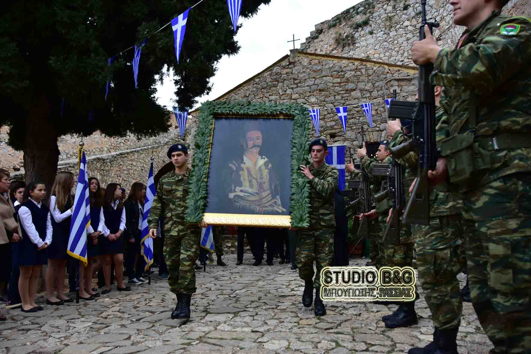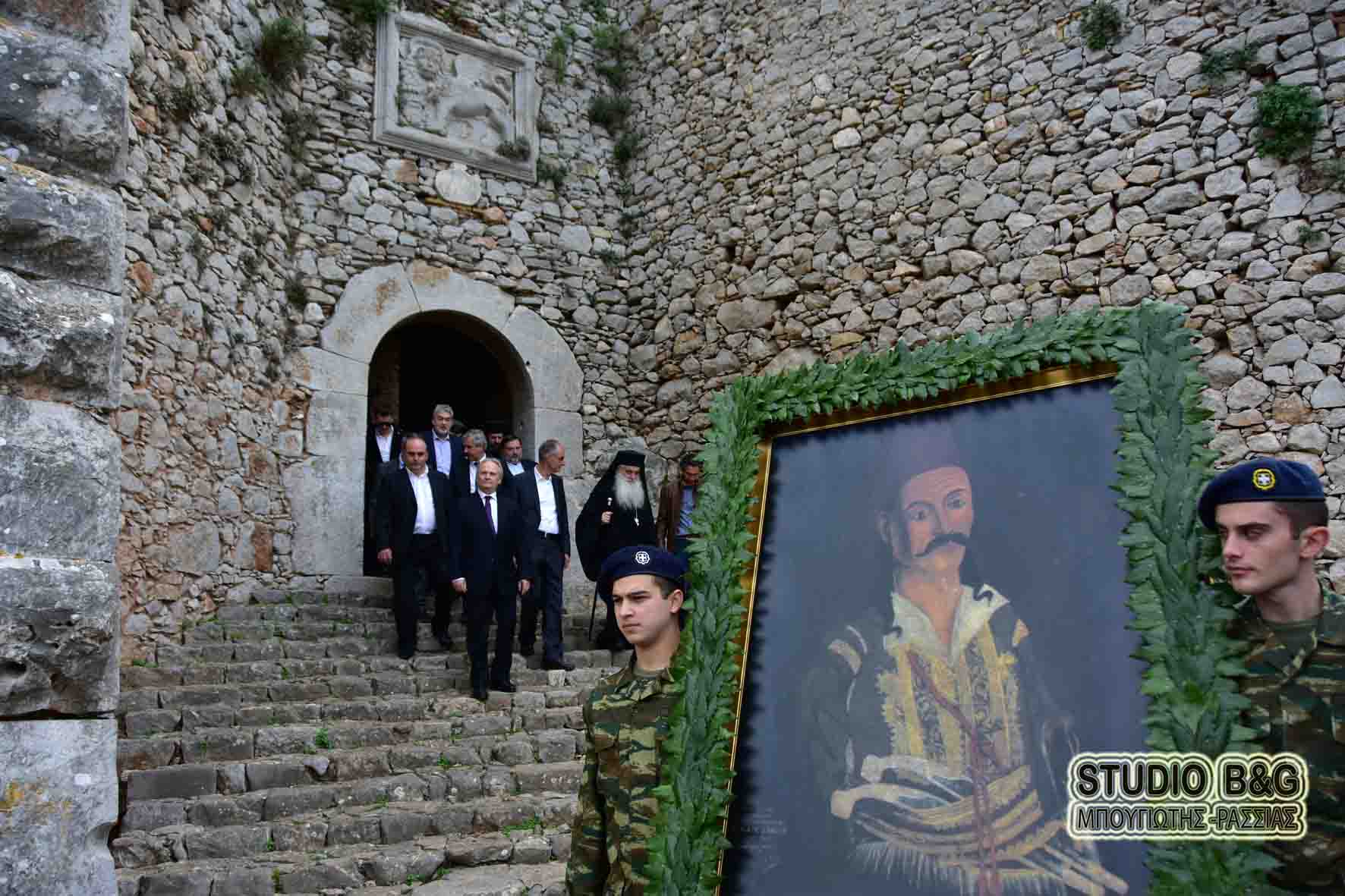 Όπως κάθε χρόνο, έτσι και φέτος την τελευταία Κυριακή κάθε Νοέμβρη, εορτάζεται στο Ναύπλιο η Άλωση του Παλαμηδιού και η απελευθέρωση της πόλης από τον Τούρκικο ζυγό. Το πρωί σήμερα Τιμητικό Άγημα, παρέλαβε την εικόνα του Στάϊκου Σταϊκόπουλου, από το Δημαρχείο και την ανέβασε στο κάστρο του Παλαμηδίου.
