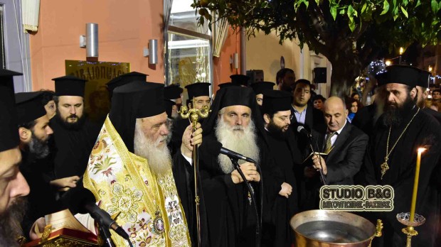 Το Ναύπλιο επισκέφτηκε την Δευτέρα 21 Δεκεμβρίου 2015 ο Αρχιεπίσκοπος Αθηνών και πάσης Ελλάδος , κ. Ιερώνυμος συνοδευόμενος από τους συνεργάτες του. Τον Αρχιεπίσκοπο υποδέχθηκε ο Μητροπολίτης Αργολίδος Νεκτάριος κι ο θεοφιλέστατος Επίσκοπος Επιδαύρου Καλλίνικος. Ο Αρχιεπίσκοπος τέλεσε τα θυρανοίξια στον Ιερό ναό του Αγίου Γεωργίου στην περιοχή του δημοτικού διαμερίσματος Ανυφί Ναυπλίας και κατόπιν μίλησε σε μαθητές του Ναυπλίου στο κλειστό γυμναστήριο της πόλης. Το εκκλησάκι του Αγίου Γεωργίου κτίστηκε με δαπάνες του Αδριανού Δήμα κάτοικου της περιοχής ,εις ανάμνηση του γιού του Γεωργίου που πριν μερικά χρόνια έχασε την ζωή του από τροχαίο ,στο σημείο που χτίστηκε η εκκλησία . Ο Αρχιεπίσκοπος δήλωσε την συμπαράσταση του στον κ. Δήμα και όπως ο ίδιος είπε ήρθα να εκπληρώσω την επιθυμία του πατέρα προς τον γιο του. Ο Αρχιεπίσκοπος μετά την συνάντηση με τα παιδιά θα τελέσει τον Αγιασμό στο νέο εκκλησιαστικό βιβλιοπωλείο της Μητροπόλεως Αργολίδος. Τον Αρχιεπίσκοπο υποδέχθηκαν μεταξύ άλλων οι Βουλευτές Αργολίδος Ι.Ανδριανός και Ι. Μανιάτης , ο αντιπεριφερειάρχης Αργολίδος Α.Χειβιδόπουλος, ο θεματικός αντιπεριφερειάρχης Πελοποννήσου Β.Σιδέρης, οι δήμαρχοι Ναυπλίου Δ .Κωστούρος και Άργους Δ .Καμπόσος , η πρώην βουλευτής Ε. Παπαδημητρίου. και πάρα πολύς κόσμος.
