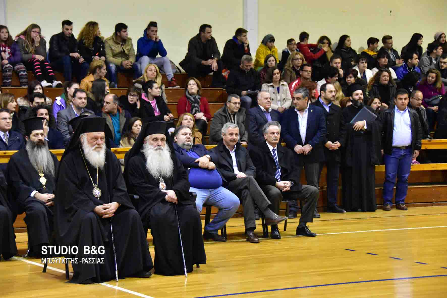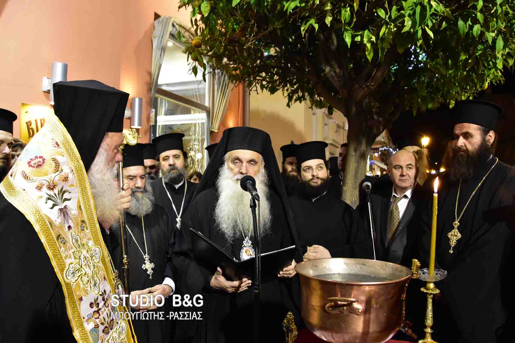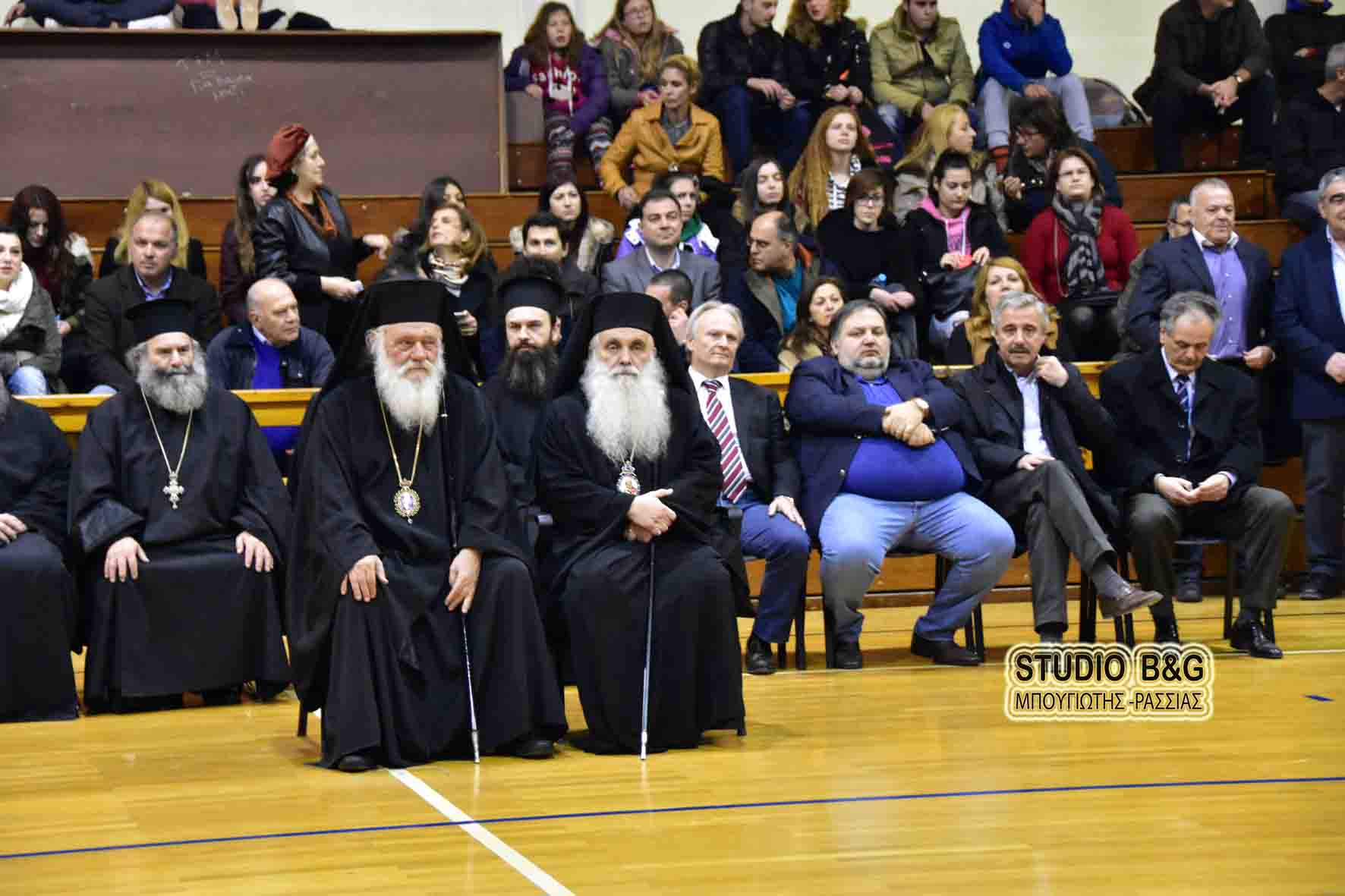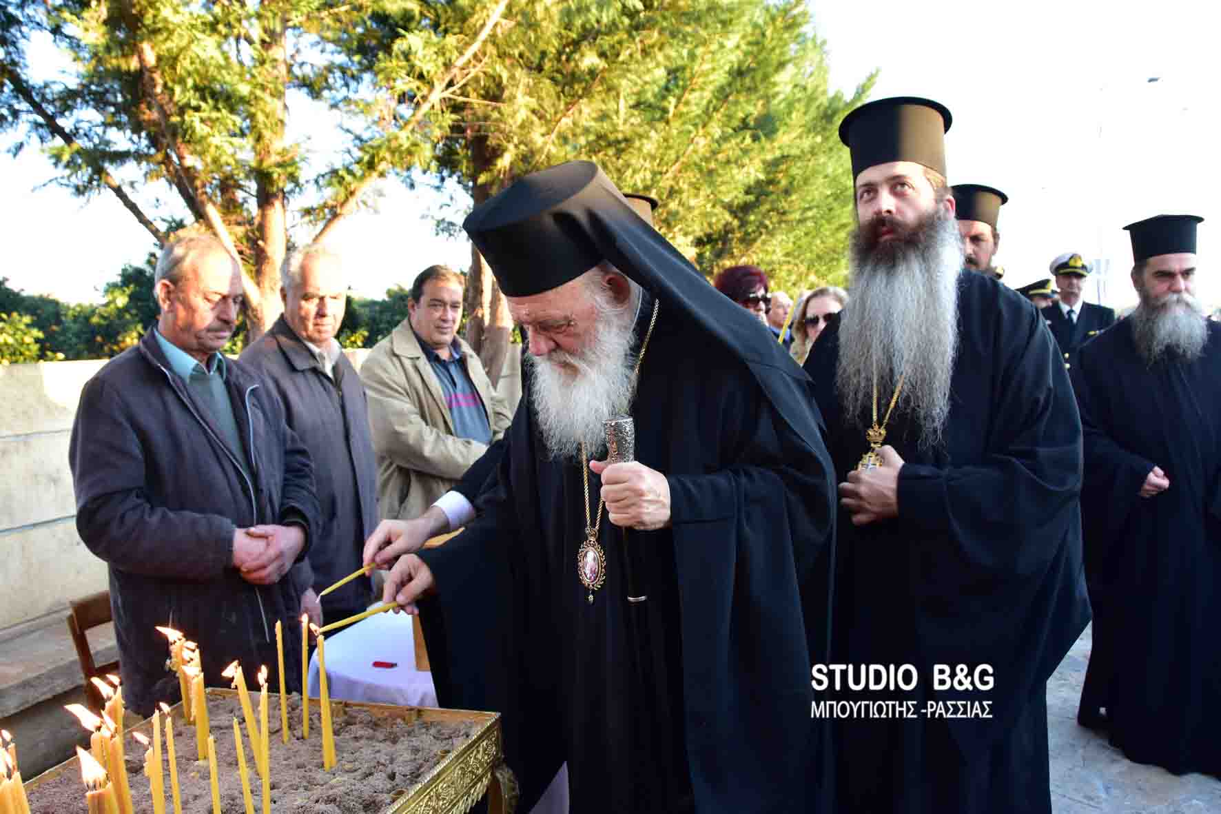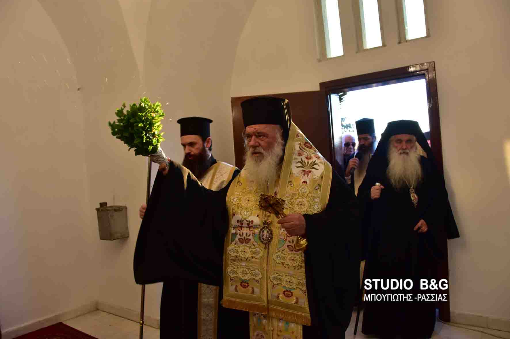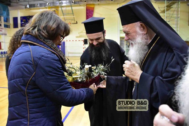 Ο Αρχιεπίσκοπος μετά την συνάντηση με τα παιδιά στο κλειστό γυμναστήριο της πόλης , τέλεσε την ακολουθία του Αγιασμού στο νέο εκκλησιαστικό βιβλιοπωλείο της Μητροπόλεως Αργολίδος ,στο Ναύπλιο. Ο μητροπολίτης Αργολίδος Νεκτάριος ευχαρίστησε τον Αρχιεπίσκοπο για την τιμή που έκανε και επισκέφτηκε για τρίτη φορά σε ένα χρόνο την Αργολίδα και του δώρισε ένα πίνακα με το αυθεντικό ποτρέτο του Αρχιεπισκόπου Συμφερουπόλεως και Κριμαίας Λουκά του ιατρού. Τον Αρχιεπίσκοπο υποδέχθηκαν μεταξύ άλλων οι Βουλευτές Αργολίδος Ι.Ανδριανός και Ι. Μανιάτης , ο αντιπεριφερειάρχης Αργολίδος Α.Χειβιδόπουλος, ο θεματικός αντιπεριφερειάρχης Πελοποννήσου Β.Σιδέρης, οι δήμαρχοι Ναυπλίου Δ .Κωστούρος και Άργους Δ .Καμπόσος , η πρώην βουλευτής Ε. Παπαδημητρίου, και πάρα πολύς κόσμος.