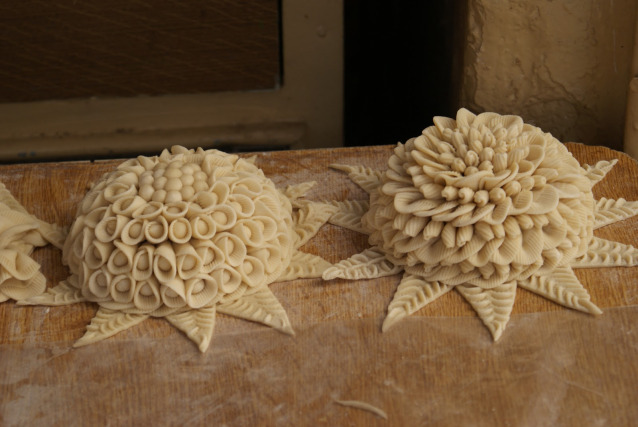 Όταν πλάσουν το ζυμάρι, παίρνουν τη μισή ζύμη και φτιάχνουν μια κουλούρα, ενώ με την υπόλοιπη φτιάχνουν ένα σταυρό με λωρίδες και τον τοποθετούν πάνω στο ψωμί. Στο κέντρο βάζουν ένα άσπαστο καρύδι και στην υπόλοιπη επιφάνεια σχεδιάζουν σχήματα με το μαχαίρι ή με το πιρούνι, όπως λουλούδια , φύλλα, καρπούς, πουλάκια.