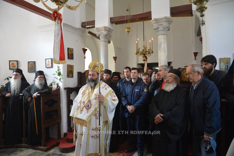 Η ιερέα λιτάνευσης κατέληξε στο Κάθισμα της Μονής όπου ετελέσθη η Αρχιερατική Θεία Λειτουργία προεξάρχοντος του Σεβασμιωτάτου Μητροπολίτου Λαγκαδά, Λητής και Ρεντίνης κ.κ. Ιωάννου, και με τη συμμετοχή των Καθηγουμένων των Ιερών Μονών Ιβήρων Πανοσιολ. Αρχιμανδρίτου π. Ναθαναήλ, και Εσφιγμένου π. Βαρθολομαίου, του προηγουμένου της Ι.Μ. Ιβήρων π. Βασιλείου, καθώς και άλλων ιερομονάχων και διακόνων από πολλές Μονές της Αθωνικής Πολιτείας.