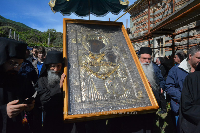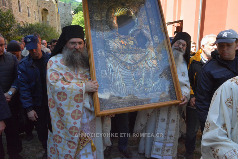 Την κυριόνυμο ημέρα της εορτής, Τρίτη της Διακαινησίμου ημέρα της εβδομάδος, πραγματοποιήθηκε τις πρώτες πρωινές ώρες η Ακολουθία του Όρθρου και ο Αγιασμός στη Φιάλη της Μονής, και εν συνεχεία η περισπούδαστος Εικόνα, συνοδεία όλων των προσκυνητών, λιτανεύτηκε στα κτήματα και στα παρεκκλήσια πέριξ του Μοναστηριού.