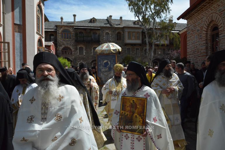 Μέσα σε κλίμα Αναστάσιμης χαράς και συμφώνως προς την Αγιορείτικη παράδοση, εορτάσθη την Τρίτη ημέρα της Διακαινησίμου, η κατά θαυμαστόν τρόπον εύρεση της θαυματουργού εικόνος της Παναγίας της Πορταϊτίσσης στην Ιεράν Μονήν των Ιβήρων – Αγίου Όρους.