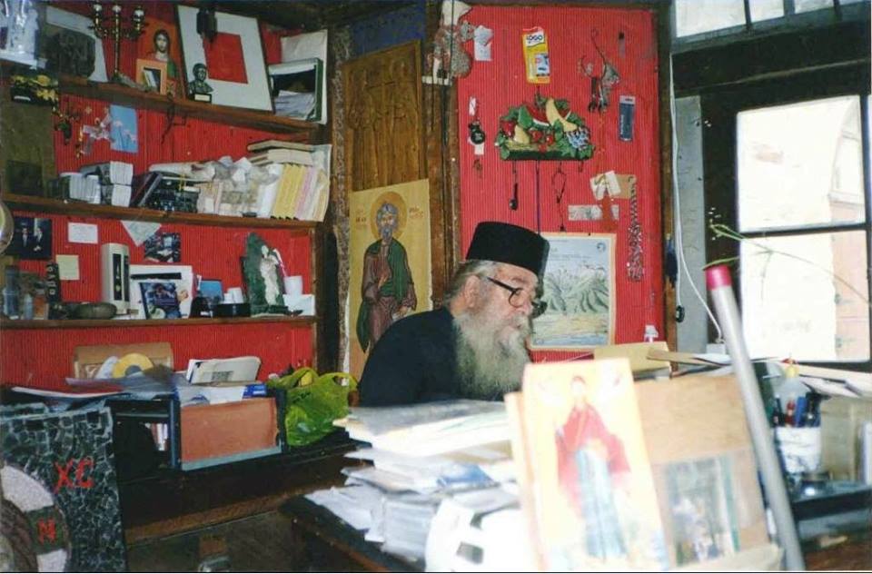 Ακόμη και σήμερα. Αλλά ο Ιερόθεος ήταν το σταθερό σημείο αναφοράς μας, μόλις φτάναμε στις Καρυές. Κατεβαίναμε από το λεωφορείο, που αγκομαχώντας μας μετέφερε από το επίνειο του Όρους, τη Δάφνη, στην πρωτεύουσα, τις Καρυές, και κατευθυνόμασταν στο βιβλιοπωλείο του. Εκεί τον συναντούσαμε, πάντοτε πίσω από το γραφείο του, μονίμως σε μία έντονη δραστηριότητα. Μιλούσε, τηλεφωνούσε, έδινε συμβουλές, βοηθούσε. Και πάντα με έναν καλό λόγο.
