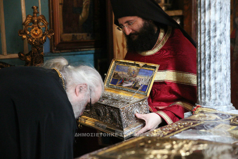 Παρουσία εκατοντάδων πιστών τελέσθηκαν οι Ακολουθίες κατά την αγιορειτική τάξη, ενώ ο Σεβασμιώτατος Μητροπολίτης κ. Σεραφείμ δώρισε στην Ιερά Μονή τεμάχιο του Ιερού Λειψάνου της Αγίας Σοφίας της Κλεισούρας.
