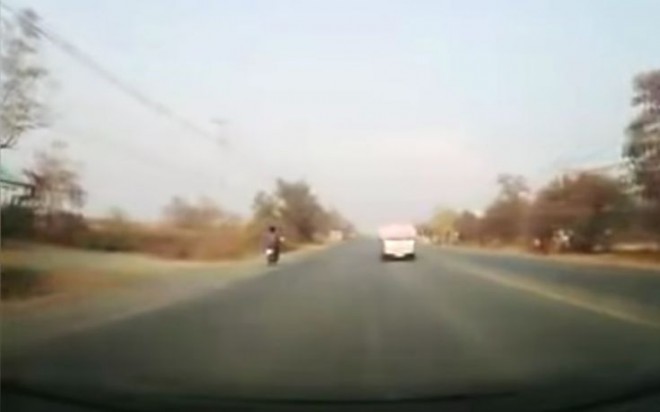 Αναπάντεχη συνάντηση με ένα στρώμα είχε ένας μοτοσυκλετιστής στην Ταϊλάνδη. Ο οδηγός της μηχανής βρισκόταν κανονικά στην πορεία του δίπλα από ένα μικρό φορτηγό όταν το στρώμα που είχε φορτωμένο στην καρότσα έπεσε πάνω του καθώς δεν ήταν δεμένο.