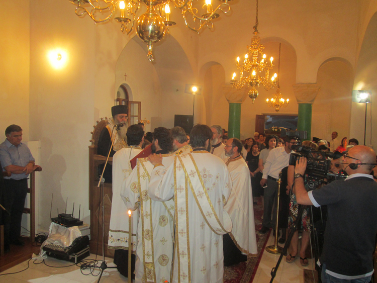 »Ο Αστρομερίτης είχε ανάγκη από ένα τέτοιο παρεκκλήσι. Και χαίρομαι που αυτό έγινε μέσα από τη διαδικασία του πένθους, του πόνου και της αγάπης. Του πένθους και του πόνου για την κοίμηση των παιδιών και του συζύγου σου, και της αγάπης σου προς τη γη των Ιεροσολύμων, προς τον άγιο Μόδεστο. Σου παραδίδουμε, κατά το έθος, τα ευλογημένα ρούχα, με τα οποία ο αρχιερέας καθάρισε, βάπτισε και μύρωσε την αγία Τράπεζα. Και εύχομαι ο Θεός να σε καθαρίζει από πάσης κηλίδος και να σου αποδίδει την ευωδία του Αγίου Πνεύματος. Έτη πολλά!»