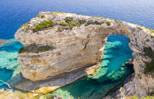 near Gaios, Greece — A view of the Trypitos Arch on the south coast of Paxos, Ionian Islands, Greek Islands, Greece, Europe — Image by © Ellen Rooney/Robert Harding World Imagery/Corbis