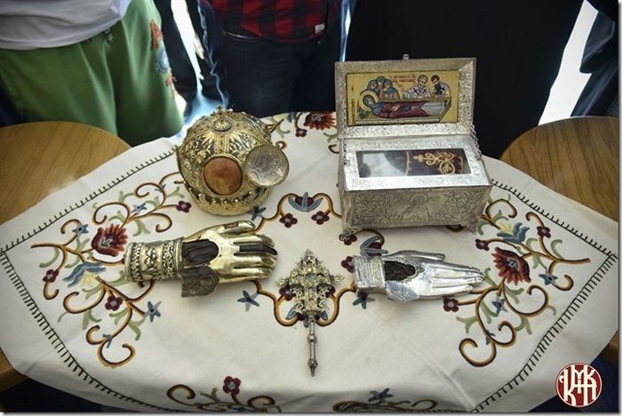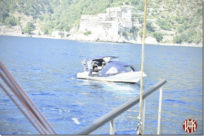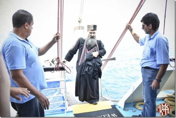 Ο ιερομόναχος π. Δημήτριος, αδελφός της Ιεράς Μονής Γρηγορίου με ευλογία του Ηγουμένου Πανοσιολ. Αρχιμ. π. Χριστοφόρου, μετέφερε επί του πλοίου Σταυρό με Τίμιο Ξύλο, καθώς και ιερά λείψανα των Αγίων Αναστασίας Ρωμαίας, Μακρίνας (αδελφής Μ. Βασιλείου), Φωτεινής Σαμαρείτιδος και Γρηγορίου Θεολόγου