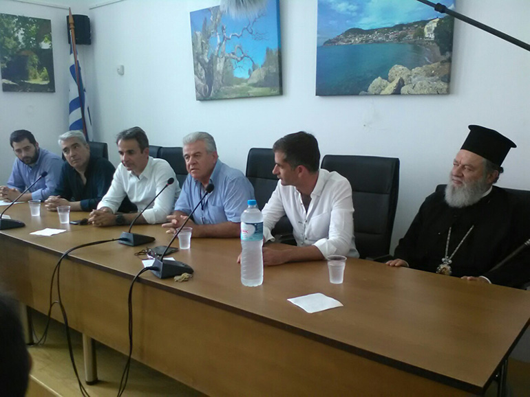 Κατόπιν, στη 1.00 μ.μ. έλαβε χώρα στη Λίμνη μικτή σύσκεψη Φορέων, με την παρουσία όλων των παραπάνω, αλλά και των υπευθύνων του Πυροσβεστικού Σώματος, του Γενικού Γραμματέα Πολιτικής Προστασίας κ. Γιάννη Καπάκη, μετά το πέρας της οποίας ο Σεβασμιώτατος συνόδευσε τον κ. Μητσοτάκη, τον Περιφερειάρχη κ. Μπακογιάννη και τους συνεργάτες τους στο Ιερό Προσκύνημα του Οσίου Ιωάννου του Ρώσσου, όπου προσκύνησαν το άφθαρτο Ιερό Λείψανο του Αγίου και πληροφορήθηκαν το έργο του Ευαγούς αυτούς Ιδρύματος της Τοπικής μας Εκκλησίας, ενώ ο Σεβασμιώτατος τους κατευόδωσε προσφέροντάς τους και αναμνηστικές ευλογίες.