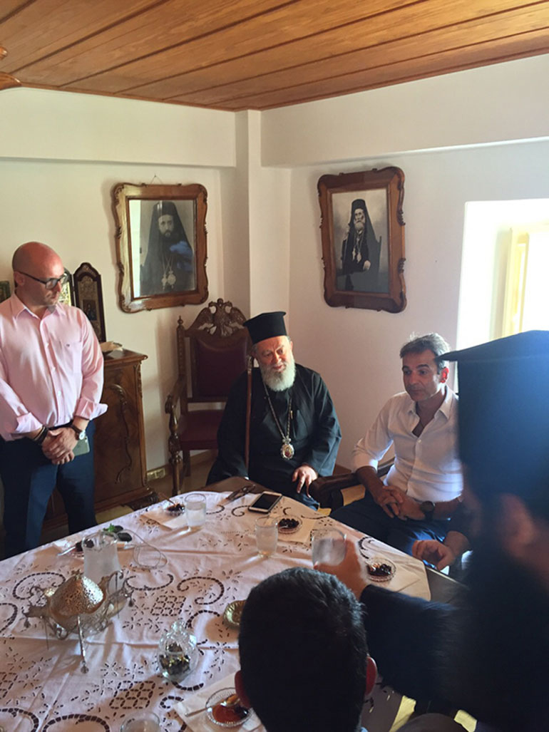 Μετά την Θεία Λειτουργία ο Σεβασμιώτατος μετέβη στις Κατασκηνώσεις της Ιεράς Μητροπόλεως στις Ροβιές, όπου υποδέχθηκε τον Πρόεδρο του Πολιτικού Κόμματος της Νέας Δημοκρατίας κ. Κυριάκο Μητσοτάκη, τον οποίον συνόδευαν ο Περιφερειάρχης Στερεάς Ελλάδος κ. Κωνσταντίνος Μπακογιάννης, ο Βουλευτής Ευβοίας κ. Σίμος Κεδίκογλου, οι Αντιπεριφερειάρχες Φάνης Σπανός, Δημήτριος Αργύρης και Γιάννης Κοντζιάς, Περιφερειακοί Σύμβουλοι, πρώην Βουλευτές και πολιτευτές.