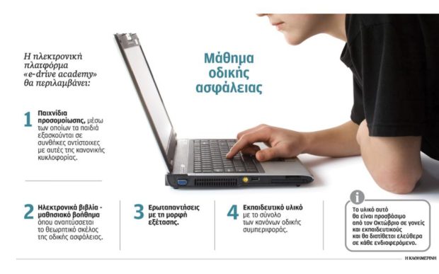 Γιατί δεν πρέπει να μιλάμε στο κινητό όταν οδηγούμε; Γιατί έχουν προτεραιότητα οι πεζοί; Γιατί έχει προτεραιότητα αυτός που έρχεται από δεξιά; Απάντηση σε όλα αυτά τα ερωτήματα επιχειρεί να δώσει το υπουργείο Υποδομών στους μαθητές των σχολείων με την ένταξη του μαθήματος της κυκλοφοριακής αγωγής στα σχολεία. Η ανάγκη αλλαγής στην οδική παιδεία έχει διαπιστωθεί εδώ και χρόνια, αλλά οποιαδήποτε δράση έχει μείνει στη σφαίρα των εξαγγελιών. Φέτος οι μαθητές βρίσκονται για πρώτη φορά λίγο πιο κοντά στην κυκλοφοριακή αγωγή, μέσω ηλεκτρονικής πλατφόρμας, η οποία έως το τέλος του μήνα θα έχει πάρει την τελική της μορφή. Πρόκειται για το «e-drive academy», το οποίο περιλαμβάνει διαδραστικό και θεωρητικό εκπαιδευτικό υλικό, το οποίο απευθύνεται σε όλες τις ηλικίες και όχι μόνο σε μαθητές. Η πλατφόρμα, που είναι σχεδόν έτοιμη από το 2012 επιδέχεται τις τελευταίες πινελιές, ώστε να μπορέσει μέχρι το τέλος του μήνα, ή το αργότερο στις αρχές Οκτωβρίου να «ανέβει» στο Διαδίκτυο, μέσω της ιστοσελίδας του υπουργείου Υποδομών.