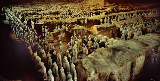 Το 1974, αγρότες ανακάλυψαν 8.000 πήλινους στρατιώτες θαμμένους σε απόσταση λιγότερη από ένα μίλι μακριά από τον τάφο του πρώτου αυτοκράτορα της Κίνας, Τσιν Σι Χουάνγκ, που έζησε τον 3ο αιώνα π. Χ.