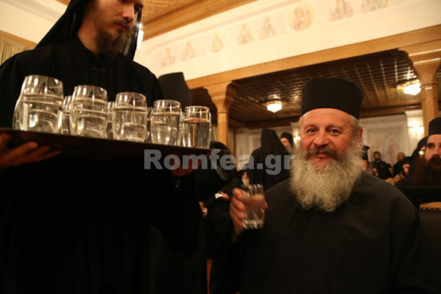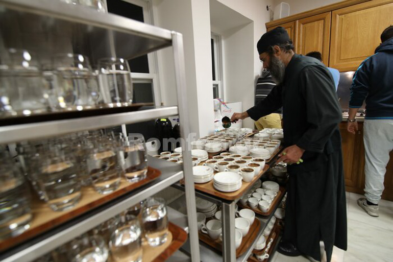Στη συνέχεια ακολούθησε κέρασμα κατά το αγιορειτικό τυπικό στο Συνοδικό της Μονής Βατοπαιδίου, όπου εκεί πραγματοποίησε ομιλία ο Σεβασμιώτατος.