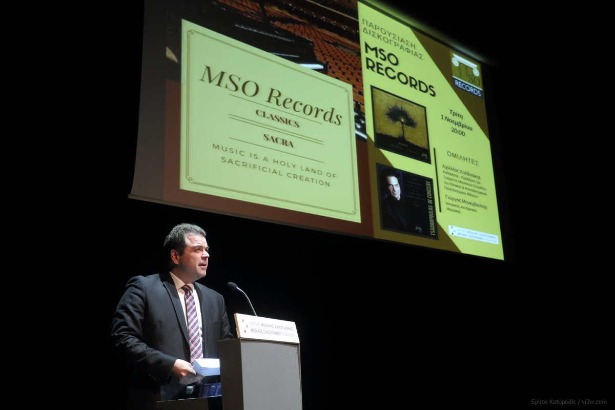 Στο δεύτερο μέρος της βραδιάς, παρουσιάστηκαν οι πρώτες διεθνούς κυκλοφορίας εκδόσεις της MSO Records. Με στόχο να ενισχύσει την παρουσία των νεοσύστατων εκδόσεων της Ορχήστρας και την κυκλοφορία τους στο εξωτερικό, ο Βασίλης Τσαμπρόπουλος εγκαινίασε το δισκογραφικό τμήμα με δύο προσωπικές του παραγωγές: τον δίσκο Tsabropoulos in concert, από ηχογράφηση συναυλίας του στο Μόναχο, με έργα Beethoven και Schumann και Eleison με συνθέσεις του βασισμένες στους ψαλμούς του Δαβίδ και τη βυζαντινή υμνωδία, με τη φωνή της ερμηνεύτριας του ιερού μέλους ανά τον κόσμο, της βυζαντινής υμνωδίας και της αρχέγονης παράδοσης, Νεκταρίας Καραντζή. Στις προσεχείς εκδόσεις περιλαμβάνονται μία κλασική ηχογράφηση της Μητροπολιτικής Συμφωνικής Ορχήστρας Αθηνών και δύο δίσκοι με ηχογραφήσεις ιερού μέλους από την Ελβετική Χορωδία Choeur Yaroslavl, υπό τη διεύθυνση του Yan Greppin και την περίφημη Ουγγρική Χορωδία του Αγίου Εφραίμ.