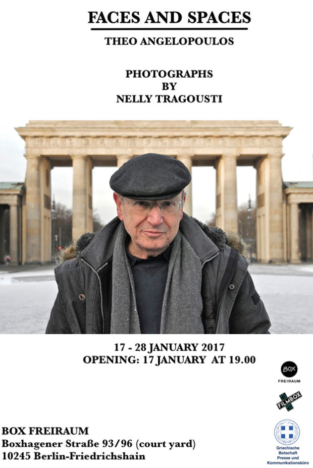 Το Βερολίνο υποδέχεται και πάλι τον σπουδαίο δημιουργό Θόδωρο Αγγελόπουλο μέσα από τις υπέροχες φωτογραφίες της Νέλλης Τραγούστη που αιχμαλώτισε την εικόνα του αξέχαστου Έλληνα σκηνοθέτη το 2008, τις μέρες δηλαδή που ο Θόδωρος Αγγελόπουλος γύριζε στην Γερμανία, και κυρίως στο Βερολίνο, την τελευταία ολοκληρωμένη ταινία του «Η σκόνη του Χρόνου».