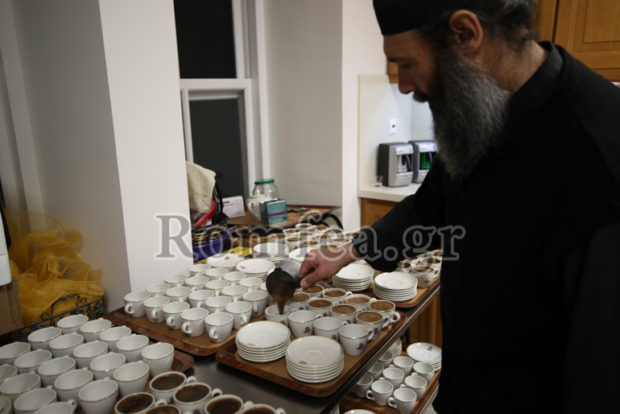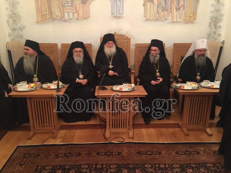 Στο Συνοδικό της Μονής παρετέθει το καθιερωμένο Αγιορείτικο κέρασμα, όπου οι Σεβασμιώτατοι ευχήθηκαν στον Γέροντα Εφραίμ για τα ονομαστήριά του.