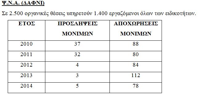 Σε τμήματα όπου νοσηλεύονται για χρόνια 30 με 40 ασθενείς -πολλοί εξ αυτών ηλικιωμένοι και αρκετοί μάλιστα κατάκοιτοι- υπάρχει μια νοσηλεύτρια ανά βάρδια.