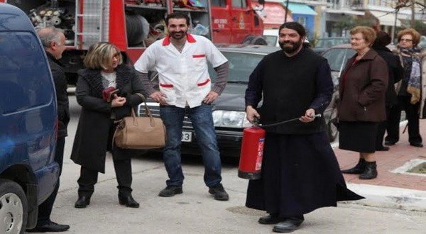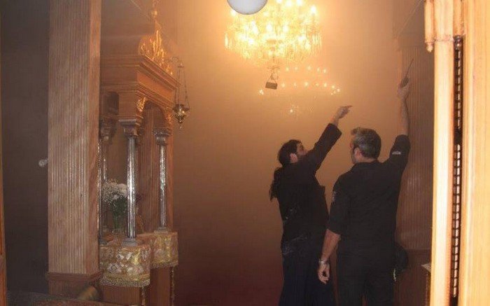 Εν συνεχεία πήρε τον πυροσβεστήρα από διπλανό κρεοπωλείο και τελικά, με την βοήθεια της Πυροσβεστικής, η φωτιά έσβησε και το μανουάλι απομακρύνθηκε έξω από την εκκλησία.