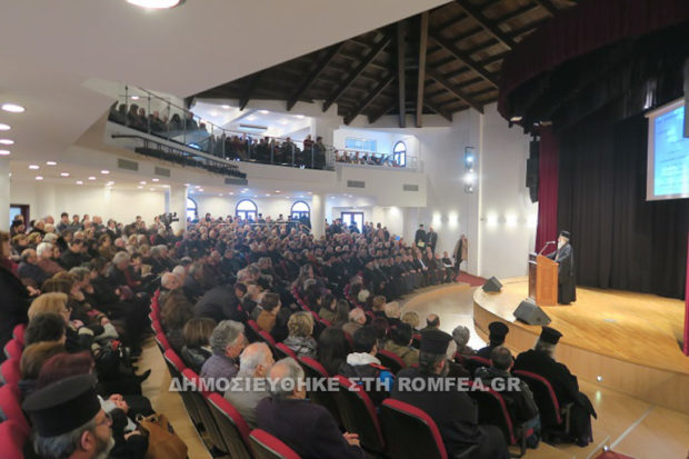 Η αθρόα προσέλευση των ευσεβών χριστιανών έδειξε για ακόμη μια φορά την απήχηση που βρήκε η πρωτοβουλία του Σεβασμιωτάτου Μητροπολίτου Φθιώτιδος κ. Νικολάου στην πραγματοποίηση των εκδηλώσεων – ομιλιών που λαμβάνουν χώρα στο Αμφιθέατρο κάθε Τετάρτη για τους μήνες Φεβρουάριο και Μάρτιο, οι οποίες είναι αφιερωμένες σε: «Αγιασμένες Μορφές της Εποχής μας».
