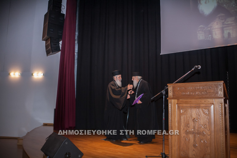 Μετά την καθιερωμένη προσευχή, ο Σεβασμιώτατος προλόγισε τον άγιο Καθηγούμενο και τον εκάλεσε εις το βήμα για να παρουσιάσει την ομιλία του εις το παρευρισκόμενο κοινό και τους ακροατάς του Ραδιοφωνικού Σταθμού (89,4 fm), της Ιεράς Μητροπόλεως μας.