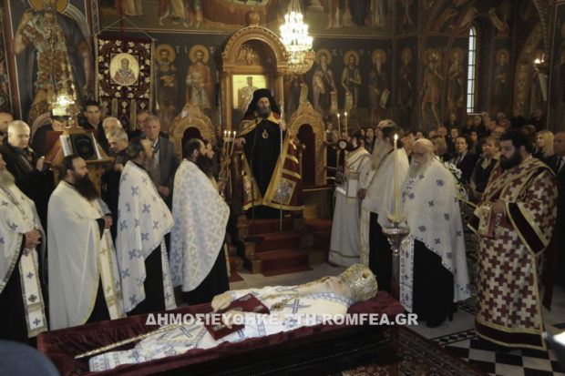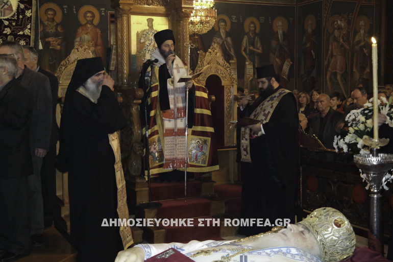 Ο Σεβασμιώτατος ενημέρωσε τους πιστούς ότι την Δευτέρα το πρωί θα τελεστεί ο Όρθρος, οι Ώρες, η Προηγιασμένη Θεία Λειτουργία και περίπου η ώρα 13:00 θα ξεκινήσει η εξόδιος ακολουθία, ώστε να καταλήξει αργότερα στην Ι.Μ. Αγίων Θεοδώρων όπου και θα είναι η τελευταία επίγειος κατοικία του.