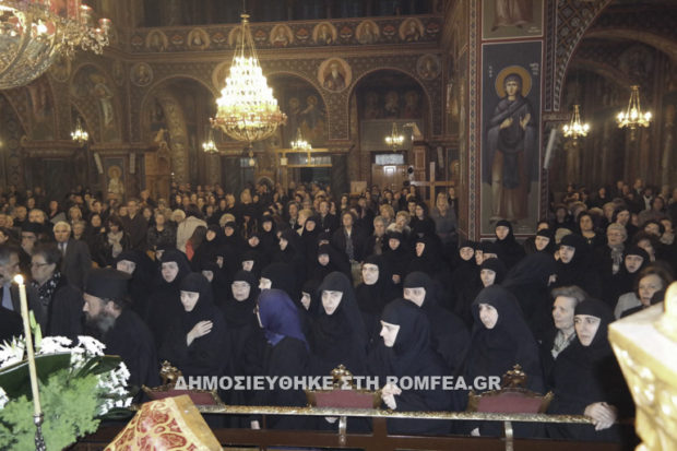 Καθ’ όλη τη διάρκεια της Ακολουθίας πλήθη κόσμου έφταναν από κάθε μέρος για το ύστατο χαίρε στο σκήνωμα του μακαριστού κυρού Σεραφείμ.