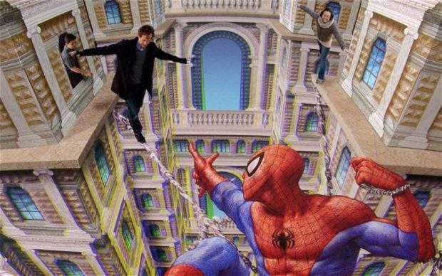 Από κωπηλασία σε λίμνη με γαλαζοπράσινα νερά έως ισορροπία πάνω σε τεντωμένο σκοινί μαζί με τον Spiderman, οι δημιουργοί street art, δίνουν την ευκαιρία στους περαστικούς να μεταφερθούν νοερά σε εντελώς διαφορετικούς κόσμους. Δείτε παρακάτω μερικά από τα καλύτερα έργα τους: