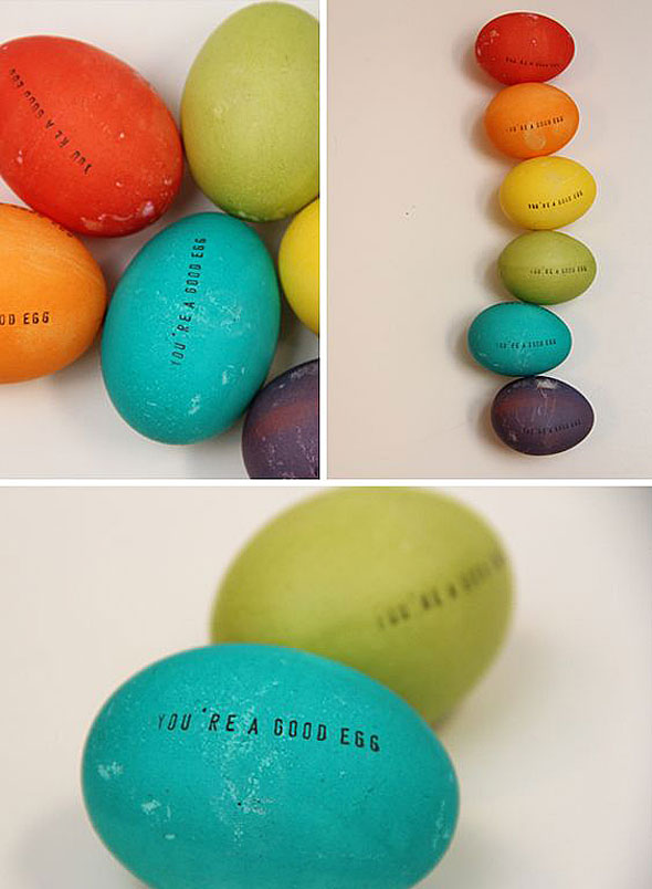 Για την ιδέα αυτή, θα βάψετε τα αυγά σας κανονικά, χωρίς όμως να τα γυαλίσετε, και θα τα αφήσετε να στεγνώσουν καλά. Στη συνέχεια, θα πρέπει να βρείτε τη σφραγίδα που θέλετε να τους δώσετε. Ιδανικά μπορείτε να πάρετε ένα σετ σφραγίδας με γράμματα και αριθμούς, όπως αυτό, και να «γράψετε» έτσι το μήνυμα που θέλετε.