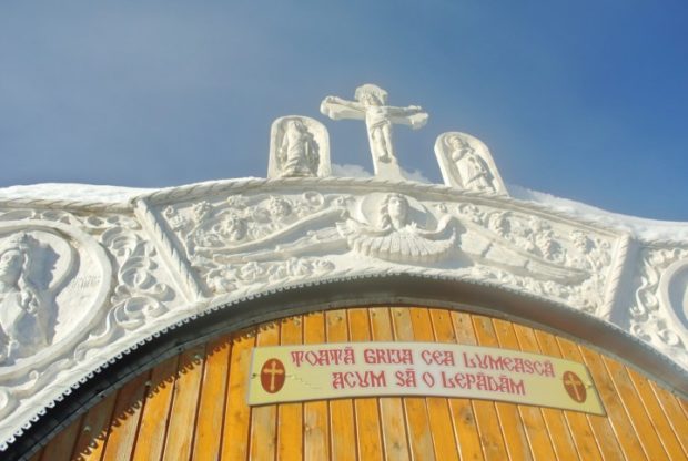 «Στην Στράζα το χιόνι είναι πολύ και είναι δύσκολο να φτάσεις στην σκήτη.Γι αυτό σκεφτήκαμε να φτιάξουμε ένα τούνελ.Έπειτα,κοιτώντας ένα ημερολόγιο μου ήλθε η ιδέα να ζωγραφίσουμε στο τούνελ 365 αγίους της εκκλησίας μας, έναν για κάθε ημέρα» δήλωσε ο κ.Εμίλ Παρέαου, ο οποίος χρηματοδότησε εξ’ολοκλήρου την κατασκευή της σκήτης αλλά και του τούνελ.