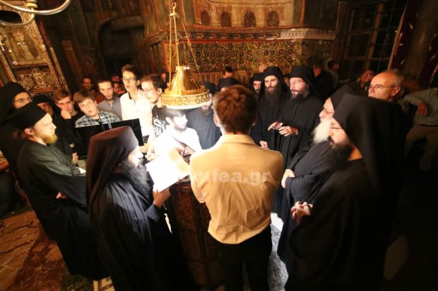 Να αναφερθεί ότι στην αγρυπνία στον δεξιό χορό έψαλλε ο χοράρχης Κώστας Αγγελίδης, ενώ στον αριστερό οι Βατοπαιδινοί πατέρες.
