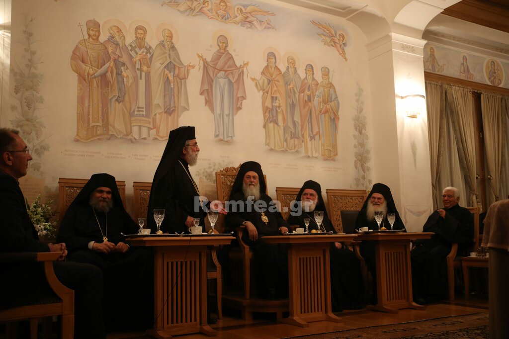 Στο αγιορειτικό κέρασμα στο Συνοδικό της Μονής, ο Γέροντας Εφραίμ καλωσόρισε του Αρχιερείς και τους ευχαρίστησε για την παρουσία τους.