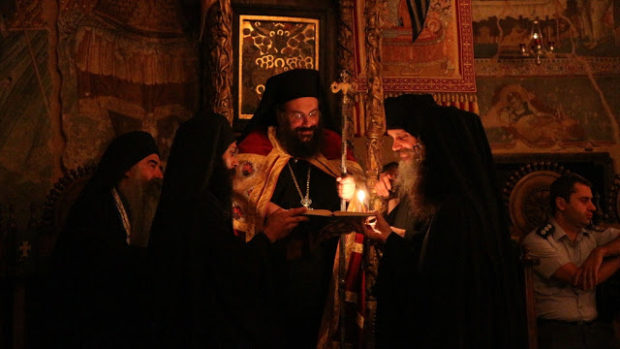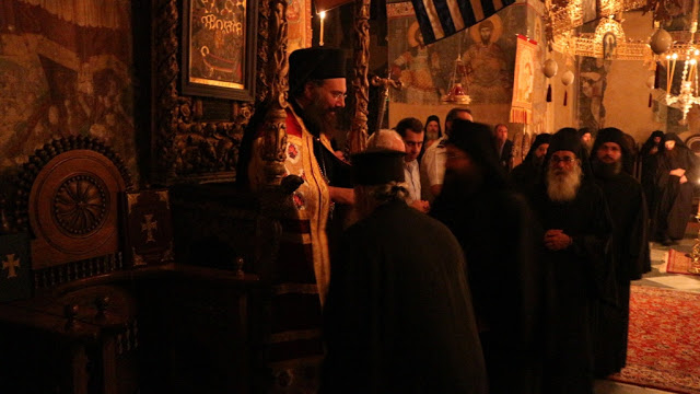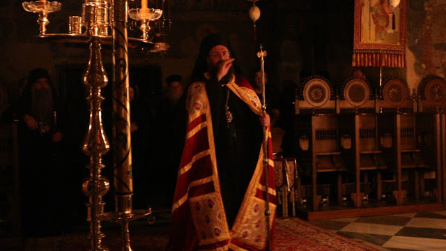 Το εσπέρας προεξήρχε της Ιεράς Αγρυπνίας επί τη εορτή της Κοιμήσεως της Θεοτόκου στον Ναό του Πρωτάτου με τη συμμετοχή των Αντιπροσώπων όλων των Ιερών Μονών, Μοναχών από τις Σκήτες και τα Ασκητήρια, του Πολιτικού Διοικητή του Αγίου Όρους κ. Αρίστου Κασμίρογλου και πολλών προσκυνητών.