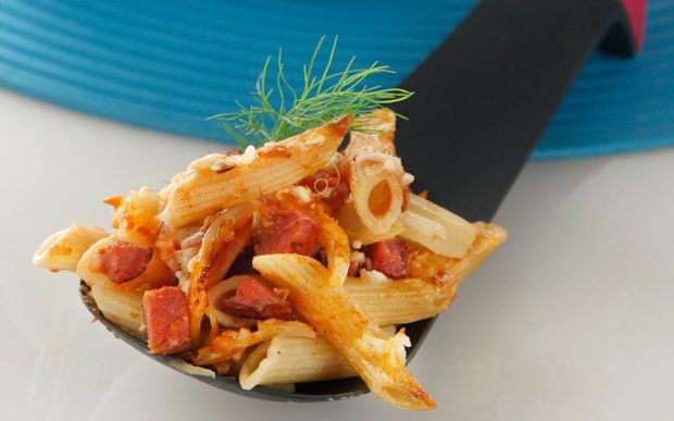 Πένες φούρνου με φινόκιο, μπέικον και κονιάκ