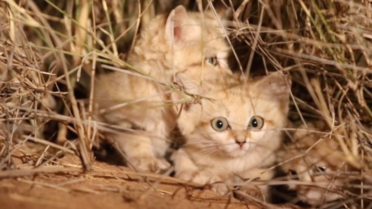 Για πρώτη φορά καταγράφηκαν από κάμερα μικρά αγριόγατας άμμου στο φυσικό τους περιβάλλον.