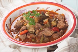 Βάζουμε το κρεμμύδι, το σέλερι, το καρότο, το σκόρδο, τις μπάμιες στο τηγάνι και αλατοπιπερώνουμε.