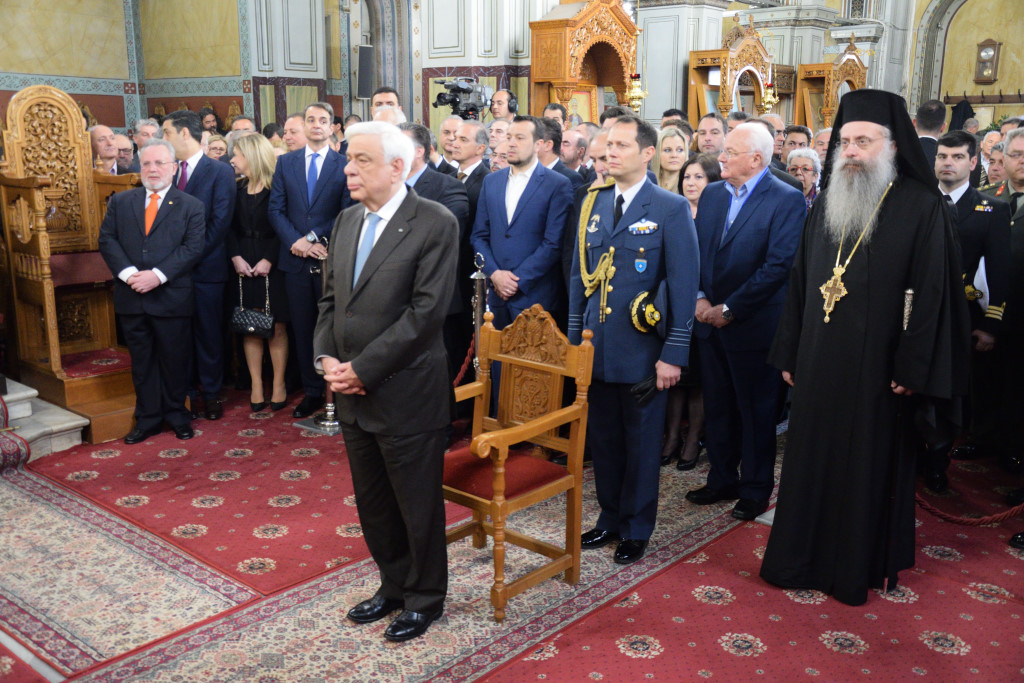 Ακολούθησε η επίσημη Δοξολογία, παρουσία του Εξοχωτάτου Προέδρου της Ελληνικής Δημοκρατίας κ. Προκoπίου Παυλοπούλου, ενώ στη συνέχεια, ενώπιον του Προέδρου, ξεκίνησε η ιερά Πομπή τιμής στους Πεσόντες της Εξόδου.