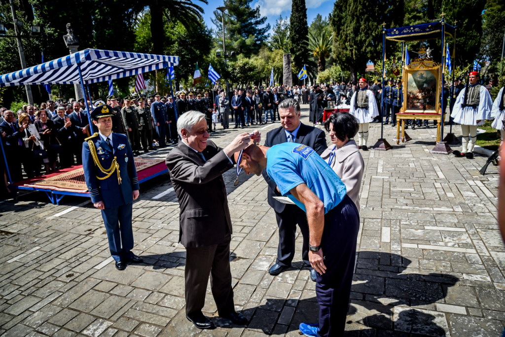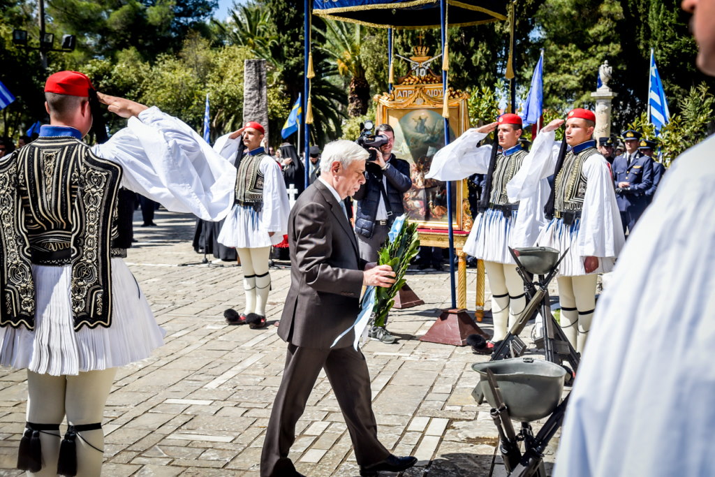 Ακολούθησε η κατάθεση στεφάνου από τον Εξοχώτατο Πρόεδρο της Ελληνικής Δημοκρατίας κ. Παυλόπουλο, η εκφώνηση του πανηγυρικού της ημέρας από τον εκπρόσωπο της Ελληνικής Κυβερνήσεως Υπουργό Ψηφιακής Πολιτικής, Τηλεπικοινωνιών και Ενημέρωσης κ. Νικόλαο Παππά, ενώ η υψίφωνος κα Vivian Douglas απέδωσε το μοιρολόι «Να ζει το Μεσολόγγι», με τη συνοδεία της χορωδίας του Πνευματικού Κέντρου του Δήμου Ιεράς Πόλεως Μεσολογγίου, υπό την διεύθυνση του καλλιτεχνικού διευθυντή κ. Σπύρου Χολέβα.