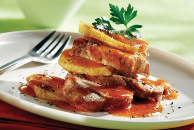 Χοιρινό με πατάτες κοκκινιστές (κυκλαδίτικο ρόστο)
