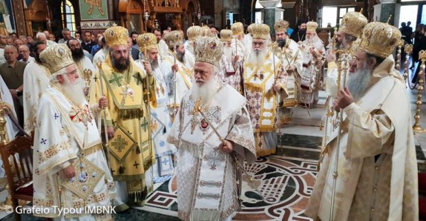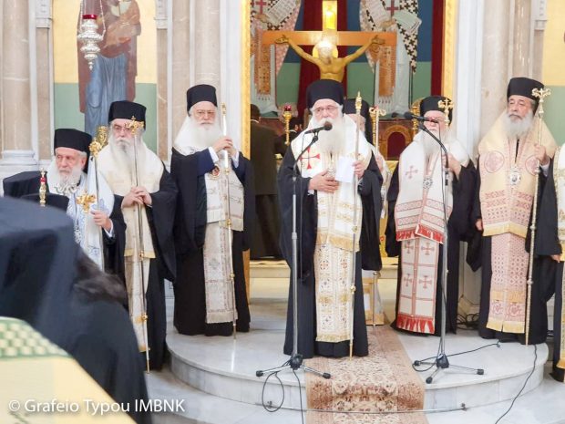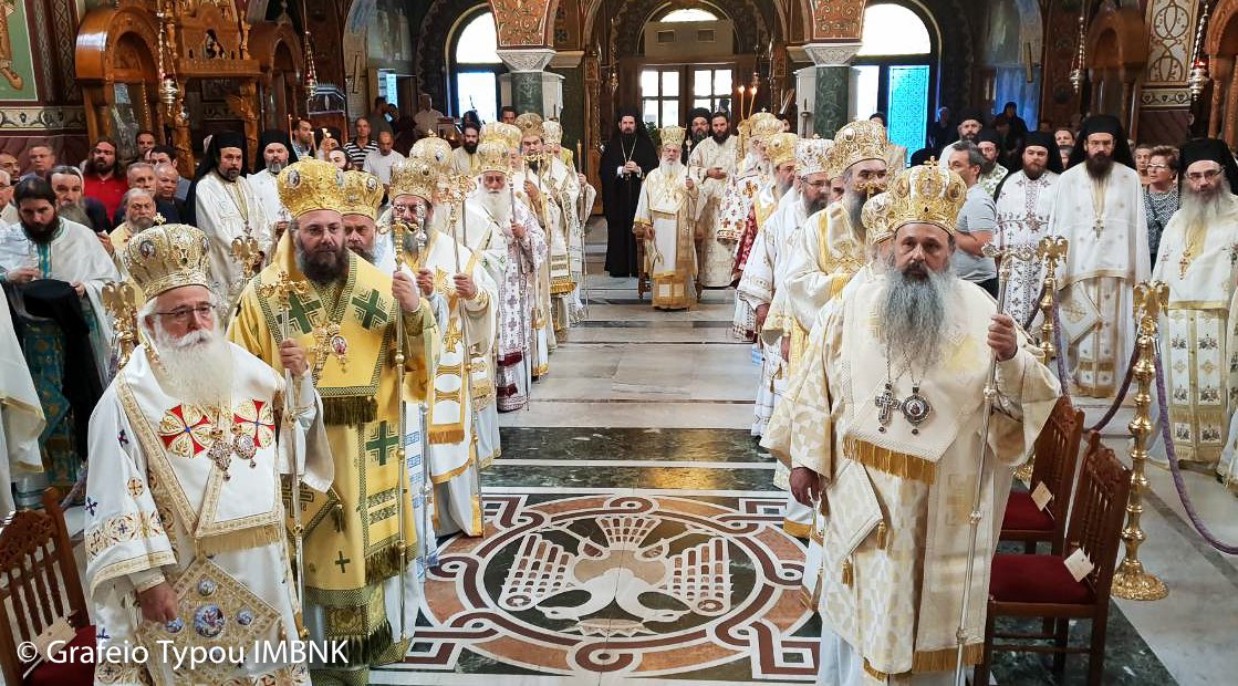 Στο Πολυαρχιερατικό Συλλείτουργο προεξήρχε ο Σεβ. Μητροπολίτης πρ. Άρτης κ. Ιγνάτιος, ενώ συλλειτούργησαν και συπροσευχήθηκαν οι Σεβασμιώτατοι Μητροπολίτες: Bεροίας κ. Παντελεήμων, Δρυϊνουπόλεως κ. Ανδρέας, Kαστορίας κ. Σεραφείμ, ο οποίος κήρυξε και τον θείο λόγο, Σερρών κ. Θεολόγος, Σύρου κ. Δωρόθεος, Xαλκίδος κ. Xρυσόστομος, N. Σμύρνης κ. Συμεών, Kερκύρας κ. Nεκτάριος, Εδέσσης κ. Ιωήλ, Πατρών κ. Xρυσόστομος, Σισανίου κ. Παύλος, Kορίνθου κ. Διονύσιος, Kυδωνίας κ. Δαμασκηνός, Mεσσηνίας κ. Xρυσόστομος, Λευκάδος κ. Θεόφιλος, Θηβών κ. Γεώργιος, Άρτης κ. Kαλλίνικος, Iλίου κ. Aθηναγόρας, Λαγκαδά κ. Iωάννης, Eλασσώνος κ. Xαρίτων, Θεσσαλιώτιδος κ. Tιμόθεος, Γρεβενών κ. Δαβίδ, Νέας Κρήνης και Καλαμαριάς κ. Ιουστίνος, Tρίκκης κ. Xρυσόστομος, Σταγών κ. Θεόκλητος και ο Τοποτηρητής της Ιεράς Μητροπόλεως Λαρίσης, Μητροπολίτης Δημητριάδος κ. Iγνάτιος.