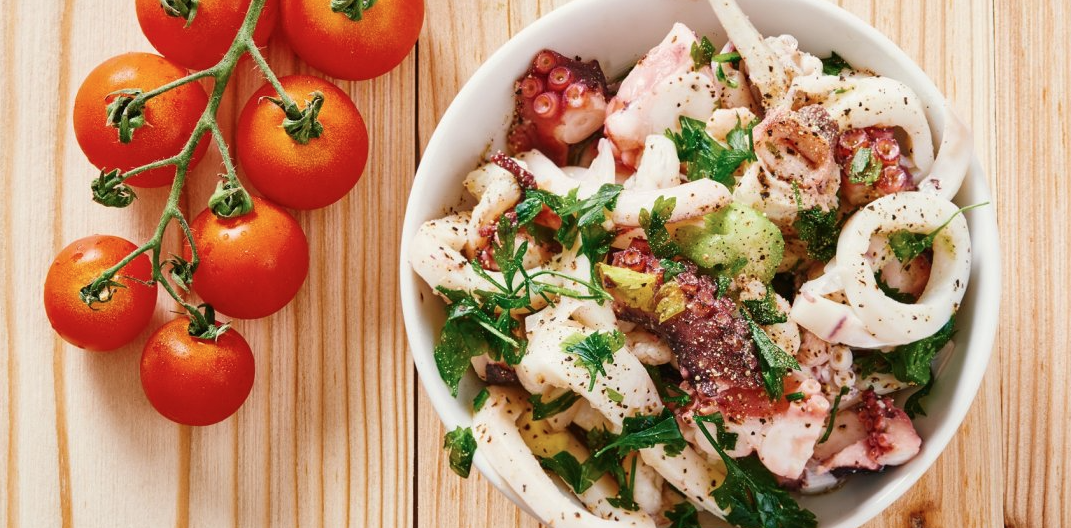 Νόστιμη σαλάτα με καλαμαράκι και μάνγκο