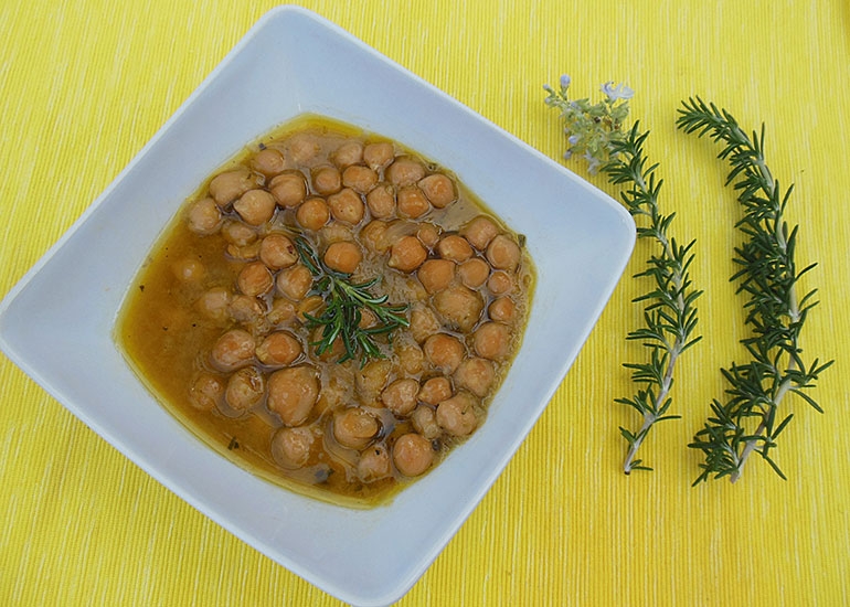 Ρεβύθια με νεράντζι και δενδρολίβανο στη γάστρα