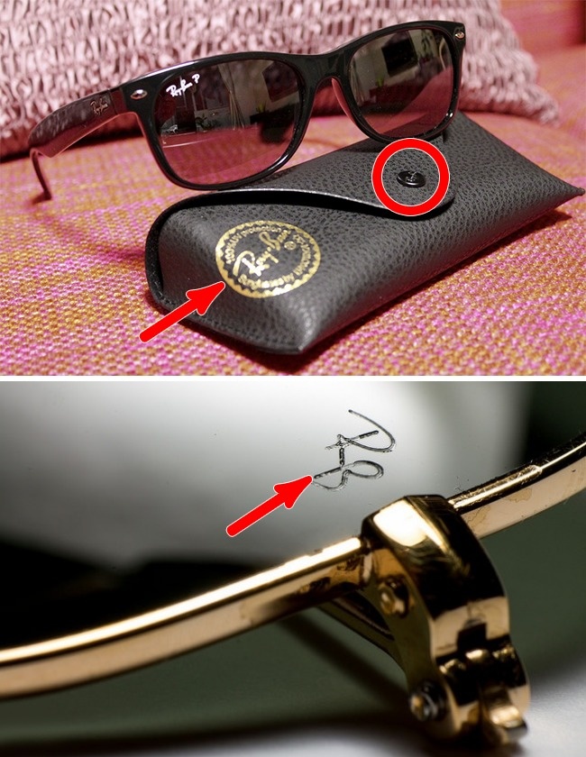 Βραχίονες. Υπάρχει ένας σειριακός αριθμός που αρχίζει με το «RB» στον αριστερό βραχίονα. Περιέχει επίσης τις ακόλουθες πληροφορίες: το χρώμα των γυαλιών, το επίπεδο του φωτισμού, τη διάμετρο του φακού και το μέγεθος της γέφυρας της μύτης. Ο δεξιός βραχίονας περιέχει το όνομα του μοντέλου, το γράμμα που σημειώνει το εργοστάσιο παραγωγής και την ετικέτα με τα ευρωπαϊκά πρότυπα ασφάλειας.