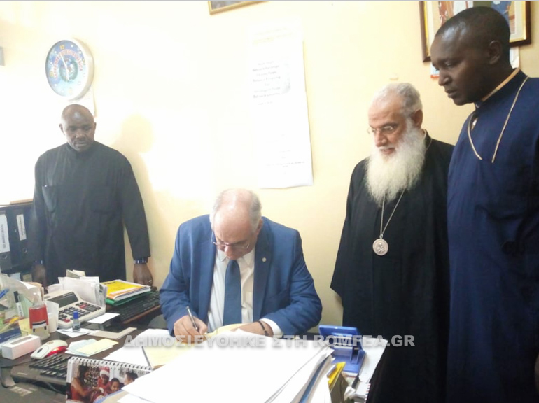 Τον Υφυπουργό Εξωτερικών συνόδευε ο πρέσβυς της Ελλάδας κ.κ. Μοάτσος και άλλοι υπηρεσιακοί παράγοντες. Υποδεχόμενος, ο Σεβασμιώτατος τον Υφυπουργό Εξωτερικών εκ μέρους της Α.Θ.Μ. του Πάπα και Πατριάρχου Αλεξανδρείας και πάσης Αφρικής Θεοδώρου του Β΄ ευχαρίστησε για την εξαιρετική αυτή τιμή να επισκεφθεί το ιεραποστολικό κέντρο και τόνισε ότι εδώ προετοιμάζονται οι νέοι κληρικοί και κατηχητές από διάφορες χώρες της Αφρικανικής Ηπείρου.