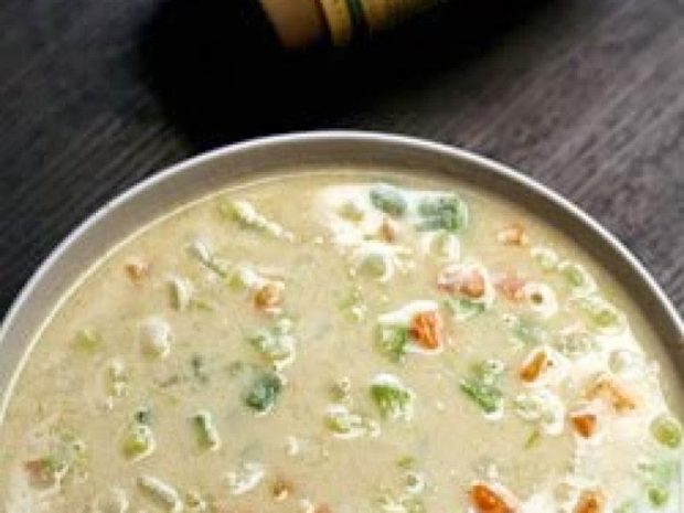Σε μια κατσαρόλα σοτάρουμε ελαφρά το σκόρδο, το πράσο και το καρότο σε ροδέλες. Στη συνέχεια προσθέτουμε 2 ποτήρια ζεστό νερό, αλατοπιπερώνουμε και βράζουμε για 15 λεπτά περίπου. Αποσύρουμε από τη φωτιά και πολτοποιούμε το μίγμα μας με τη ράβδο. Σε ένα μπολ αναμιγνύουμε το ταχίνι με το λεμόνι και το προσθέτουμε στα πολτοποιημένα λαχανικά. Ξαναβάζουμε στη φωτιά την κατσαρόλα και βράζουμε ξανά για 2 λεπτά.