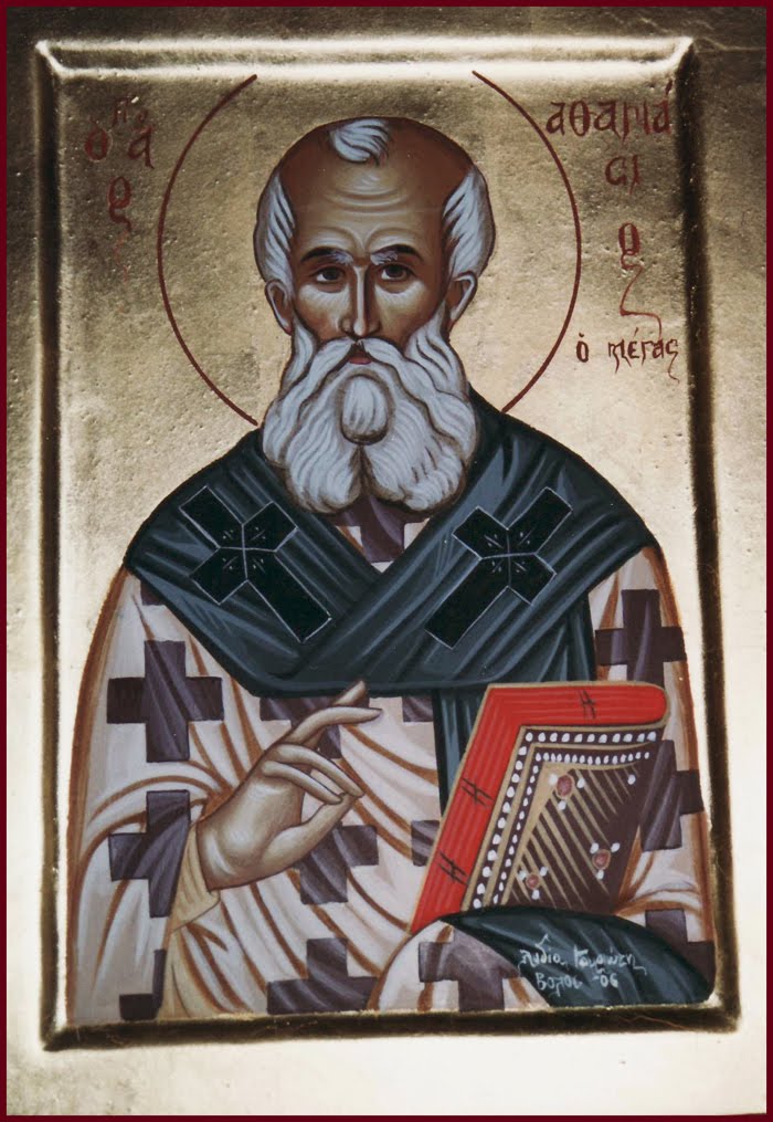 Στύλος γέγονας ὀρθοδοξίας, θείοις δόγμασιν ὑποστηρίζων, τὴν Ἐκκλησίαν Ἱεράρχα Ἀθανάσιε· τῷ γὰρ Πατρὶ τὸν Ὑιόν ὁμοούσιον, ἀνακηρύξας κατᾑσχυνας Ἄρείον· Πάτερ Ὅσιε, Χριστόν τὸν Θεόν ἱκέτευε, δωρήσασθαι ἡμῖν, τό μέγα ἔλεος.